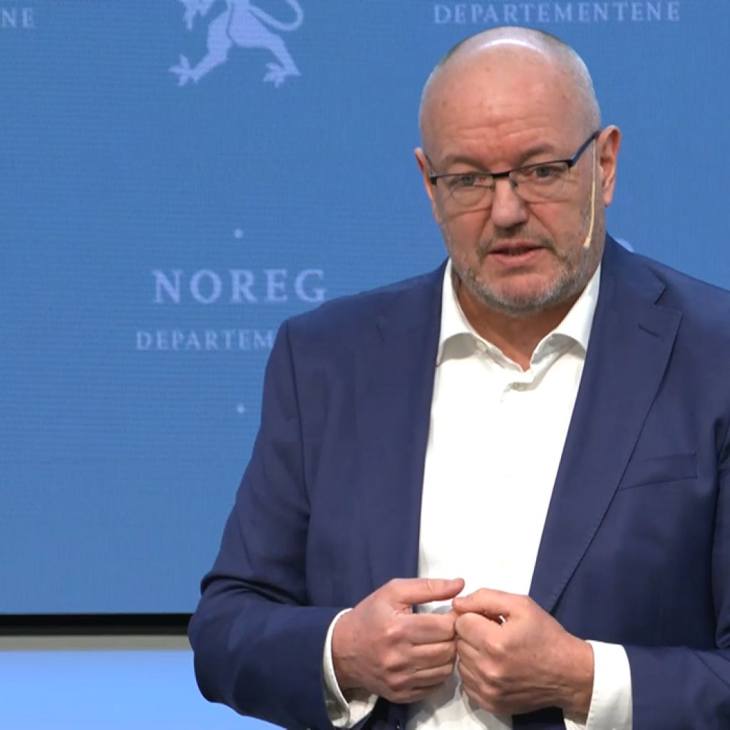 Helse- og omsorgsminister Ingvild Kjerkol opplyser på en pressekonferanse i…